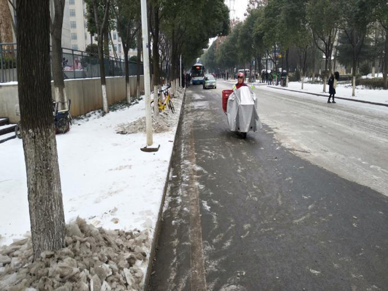 一場(chǎng)如約而至的大雪讓武漢全城銀裝素裹,卻給大家的出行帶來(lái)了諸多不便。自1月26日起,巨成物業(yè)公司即組織保安掃除巨成大廈園區(qū)內(nèi)部人行、車(chē)行道路積雪,撒上融雪鹽、鋪上草墊、毛氈守護(hù)大廈人員出入安全。至28日,響應(yīng)市政府號(hào)召,公司組織物業(yè)公司、工程公司、材料廠(chǎng)、倉(cāng)庫(kù)等20余人展開(kāi)巨成大廈外部武大園路上的清雪工作,保障市民的出行安全。在清雪現(xiàn)場(chǎng),巨成人禮讓行人、車(chē)輛,不怕吃苦、團(tuán)結(jié)一心的精神面貌展現(xiàn)了巨成竭力為社會(huì)發(fā)展服務(wù)的企業(yè)責(zé)任!