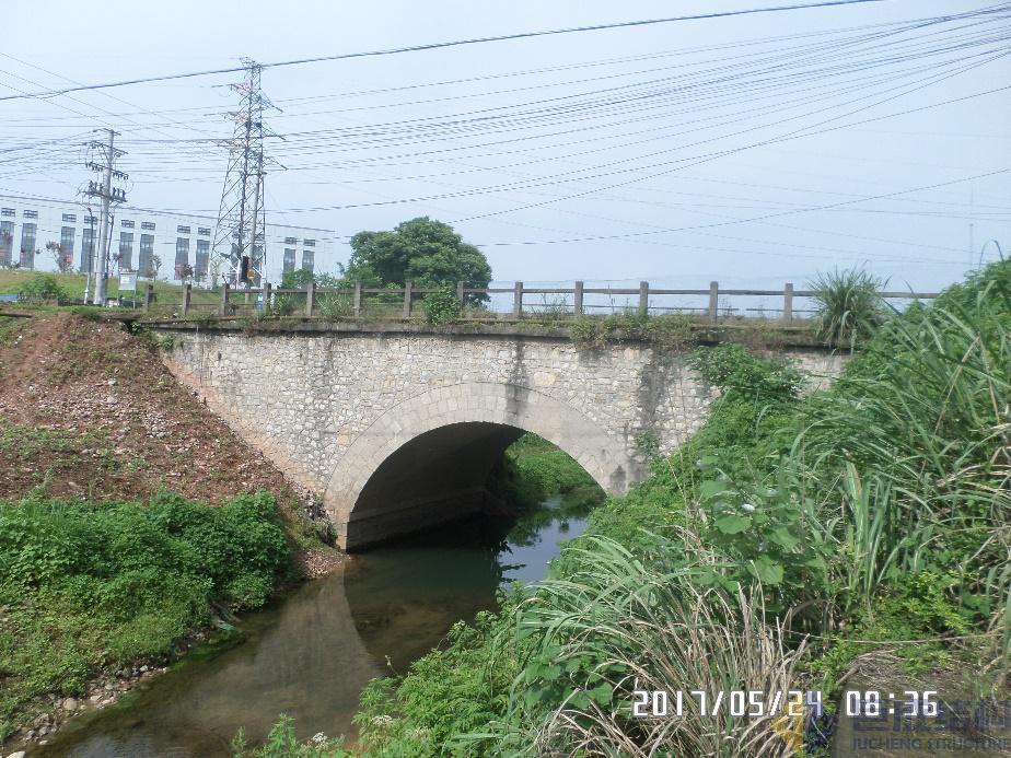 項目概況:國電江西電力有限公司萬安水力發(fā)電廠生活區(qū)南河橋是一座單跨上承式單波雙曲拱橋。為了解南河橋的結構現(xiàn)狀,判斷橋梁結構承載能力是否滿足安全通行進出廠重載車的荷載要求,2018年7月,中國國電集團江西電力有限公司萬安水力發(fā)電廠委托我公司技術人員對本橋進行現(xiàn)場檢測及靜、動載試驗,為后期橋梁使用、養(yǎng)護和加固提供依據。