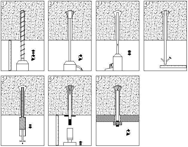 5 安裝:將組裝好的錨桿直接插至孔底,錨桿頂部錘擊加壓,使底部錨頭沿?cái)U(kuò)孔壁張開(kāi)。
