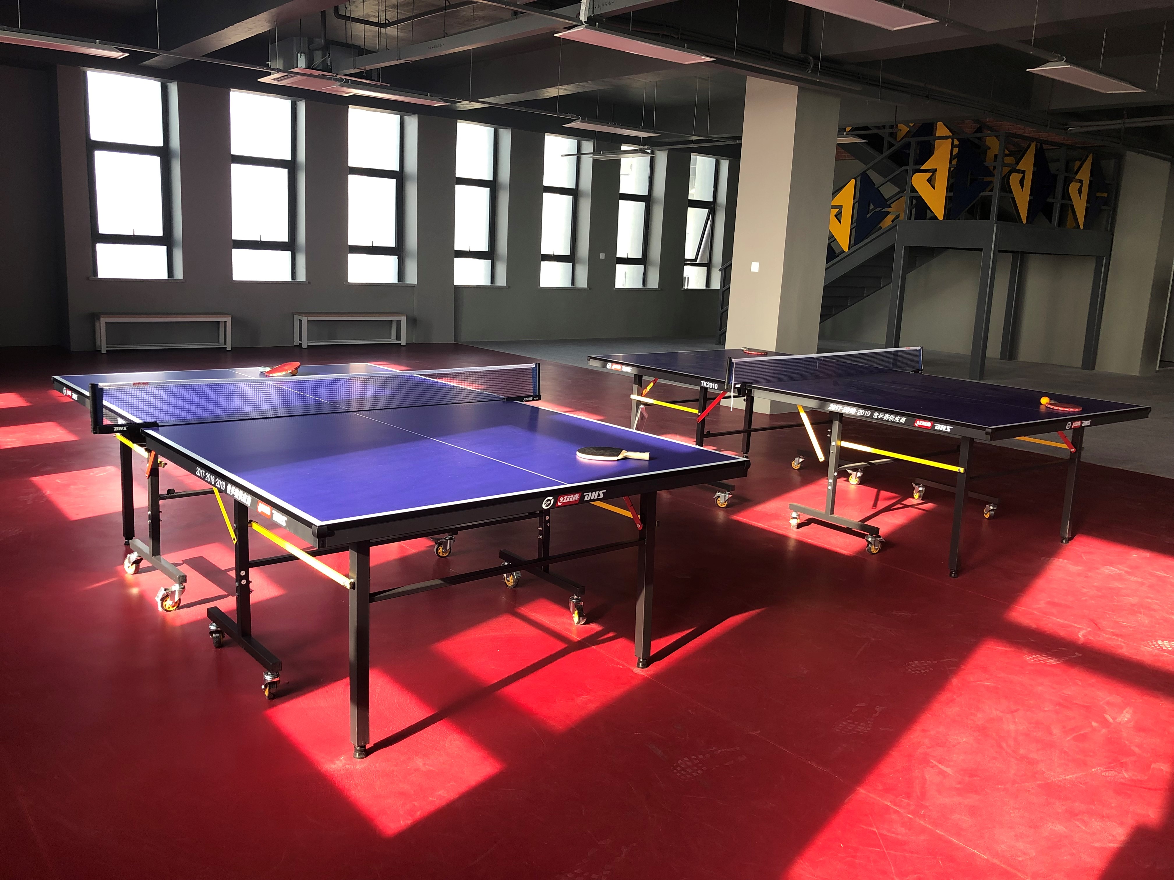 乒乓球場地設置合理,配置2套專業(yè)比賽乒乓球設施,采光良好,地面采用專業(yè)乒乓球塑膠地面,具有防滑和緩沖作用,充分的保護員工的腳踝和膝蓋,為不影響員工視線,場地設置為紅色。