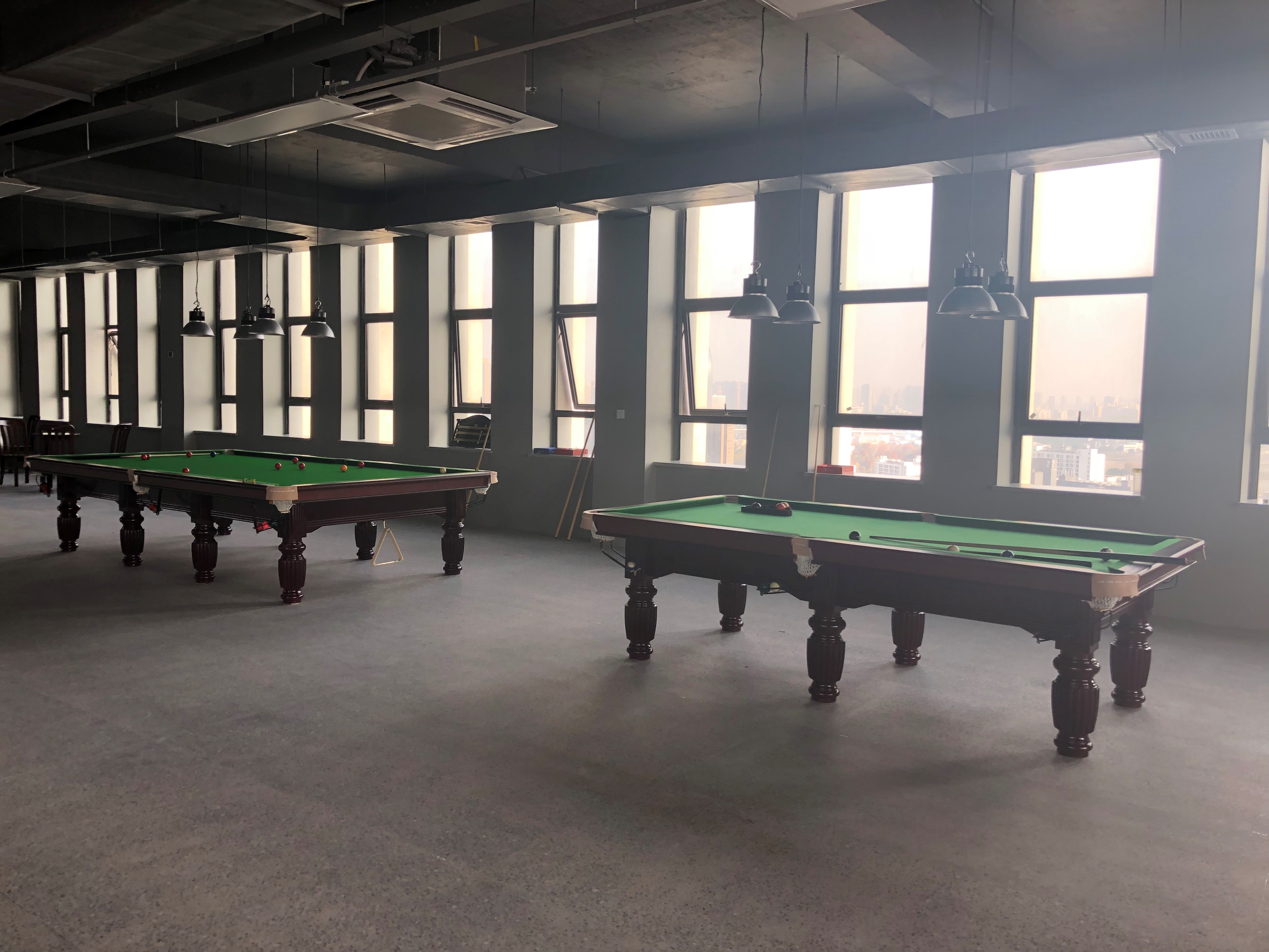 臺球區(qū)配置2套臺球設施,為滿足不同臺球愛好者的需要,其中一臺為黑八比賽用桌,一臺為斯諾克比賽用桌。