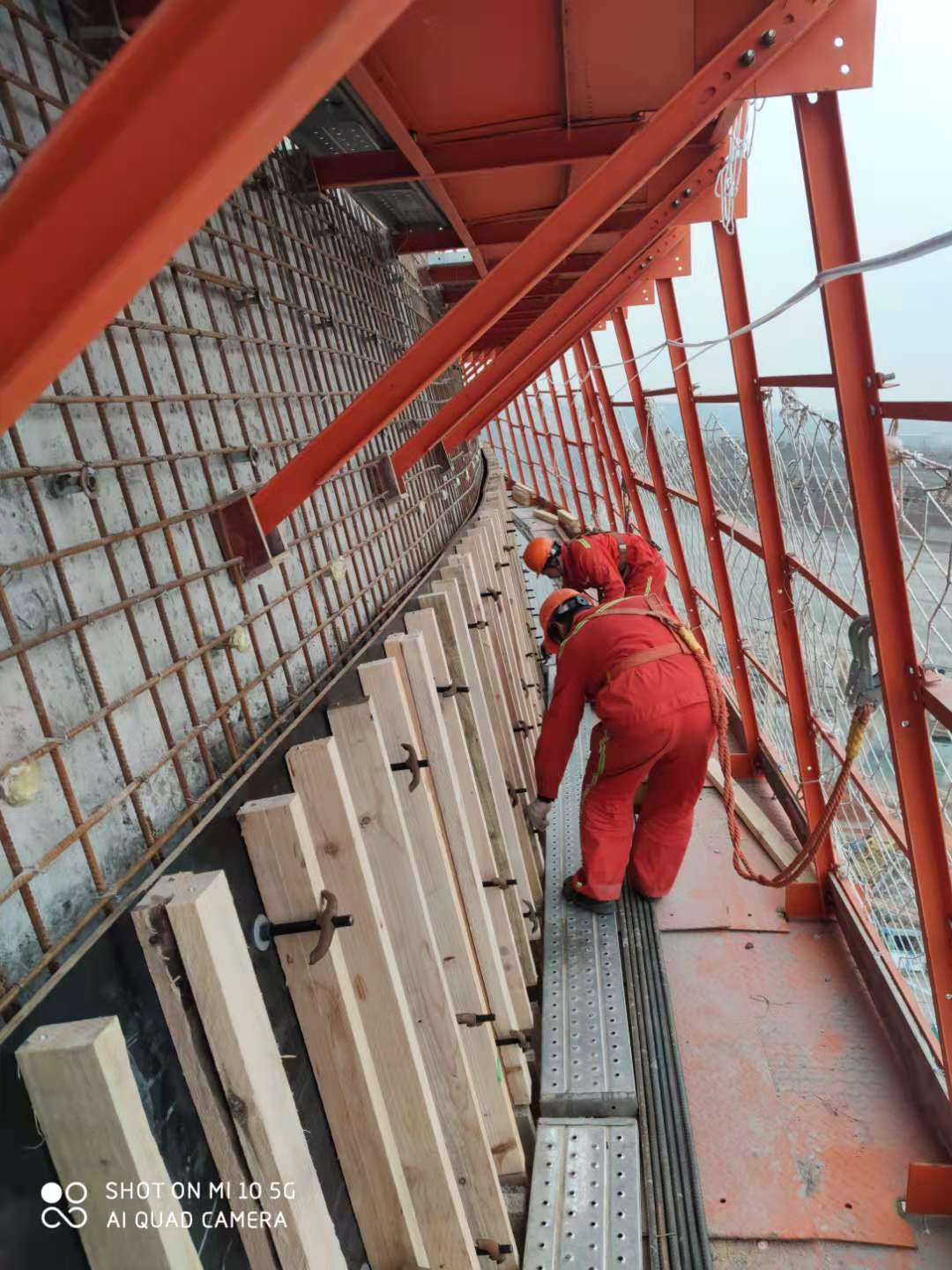 有一次澆筑混凝土,班長張漢坤帶領班組人員奮戰至凌晨2點。雖然寒風呼呼地吹,大家又累又困,但是張班長以身作則,全體人員毫無怨言,直至順利澆筑完成。工人鄭武雄憑借過硬、全面的操作技能和良好的安全意識,在鋼平臺搭設方面表現優異。不論是操作登高車,還是在70多米的高空搭設鋼平臺,鄭武雄始終沖在最前線,保質保量保安全地完成每一項任務,展現了一名合格施工人員的良好素質。