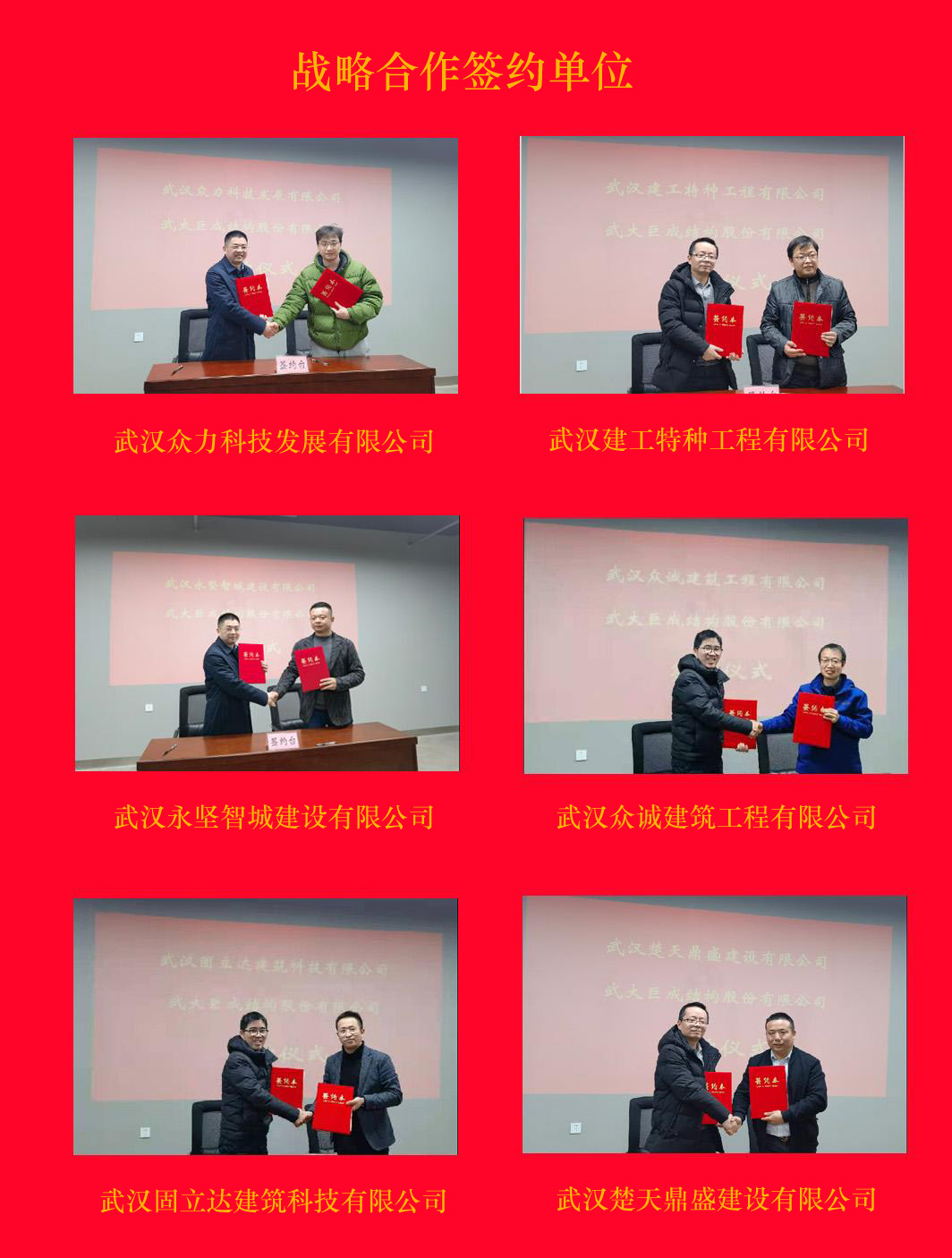 2020年12月24日,公司在巨成大廈四樓再次舉行湖北加固改造企業(yè)戰(zhàn)略合作協(xié)議簽訂儀式,本次簽約單位有武漢眾力科技發(fā)展有限公司、武漢建工特種工程有限公司、武漢眾誠建筑工程有限公司、武漢永堅智城建設有限公司、武漢楚天鼎盛建設有限公司、武漢固立達建筑科技有限公司。公司總經(jīng)理萬雄衛(wèi)、副總經(jīng)理廖杰洪、副總經(jīng)理張暢、營銷公司相關負責人參加了本次簽約儀式。