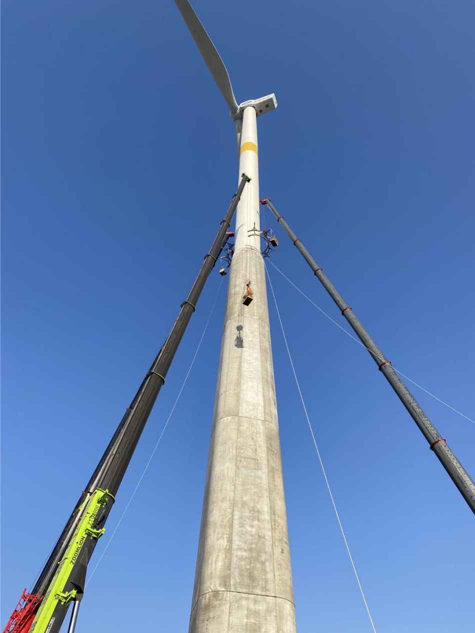 其次要解決的問題是人員的安全問題,一個(gè)是高空防寒,一個(gè)是防疫。65米處的風(fēng)速很大,且溫度極低,這對施工工人而言是一個(gè)重大的考驗(yàn)。巨成為此專門準(zhǔn)備了防寒物資,解決在高空寒冷天氣下的防寒問題。公司總部位于武漢,在2020年初的疫情中公司總結(jié)出了一套行之有效的防疫措施,如個(gè)人防護(hù)、體溫監(jiān)測、定點(diǎn)接送、健康日報(bào)等,在防疫安全的前提下有序開展工作。