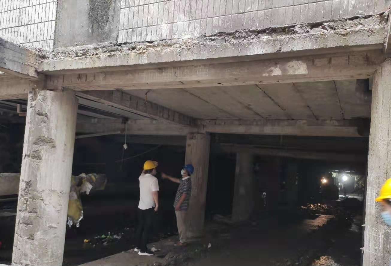 湖北省十堰市張灣區(qū)艷湖小區(qū)集貿(mào)市場6月13日發(fā)生燃?xì)獗ㄖ卮笫鹿剩掳l(fā)地周邊房屋發(fā)生不同程度的損傷。6月25日中午,十堰市“6.13”事故指揮部邀請巨成結(jié)構(gòu)專家前往十堰對部分受損建筑進(jìn)行研判。巨成結(jié)構(gòu)立即組織由周劍波教授、廖杰洪博士、王小兵工程師組成的專家組趕往十堰。在聽取情況介紹和現(xiàn)場踏勘后,巨成專家組給出了符合實際情況的建議方案。業(yè)主方對專家組中肯、可行的方案表示肯定。經(jīng)指揮部向十堰市委市政府匯報,確定由巨成結(jié)構(gòu)對存在危險點的房屋進(jìn)行應(yīng)急搶險加固。