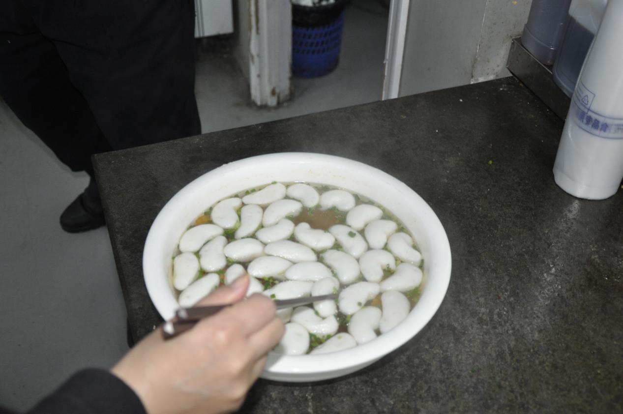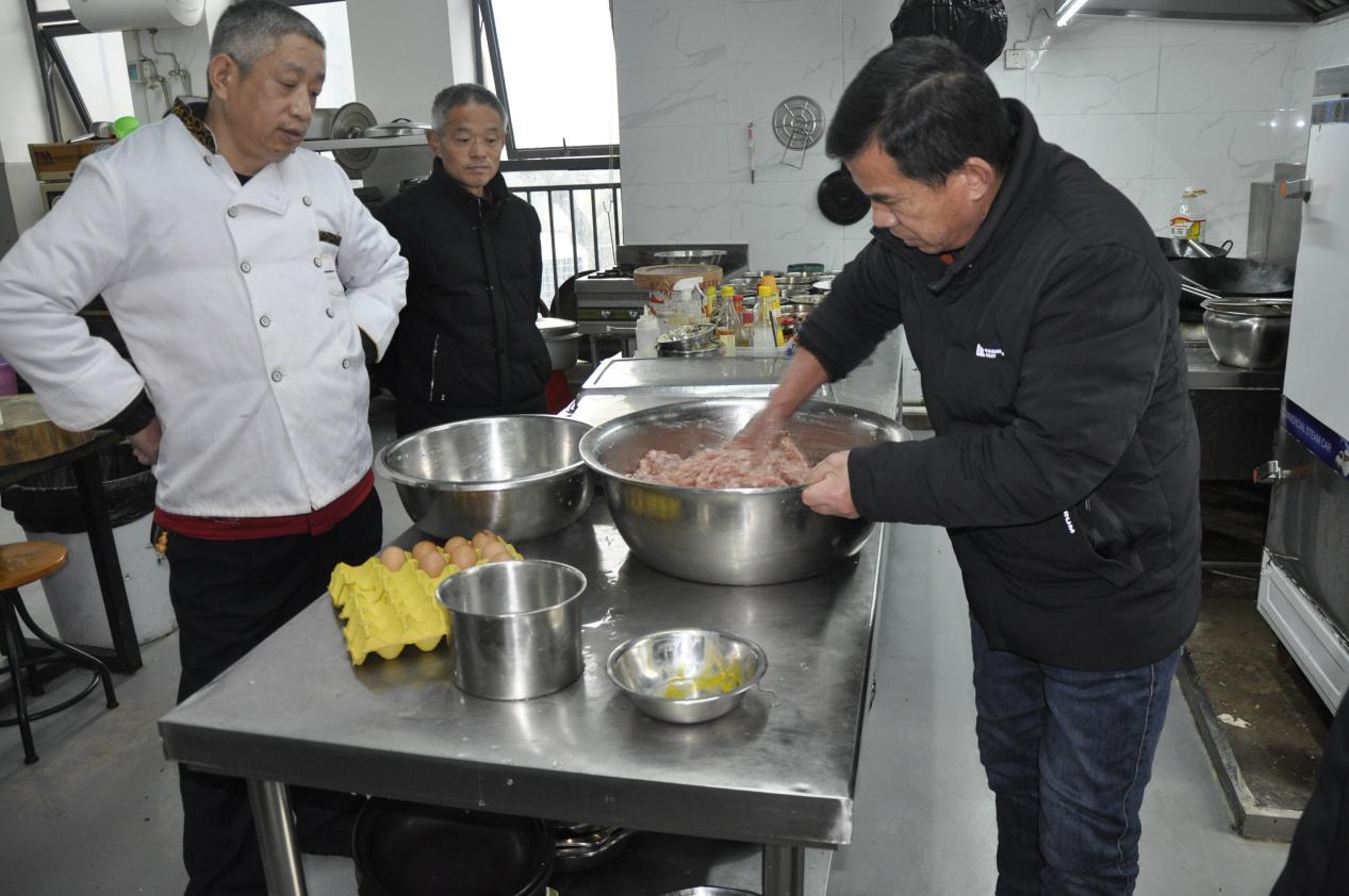 上午,管軍章講解了烹飪的主要流程、六個菜的烹飪方式和技巧及原材料、佐料、半成品、成品的正確保存,就怎樣搞好工作區域內環境、設施、設備的清潔和安全,怎樣控制成本、做好食品衛生與個人衛生等展開培訓。針對在場人員提出的問題,管大廚作了通俗易懂、深入淺出的講解。通過培訓,大家對豆腐丸子、酸湯魚丸、麻婆豆腐、紅燒小尖圓、粉蒸肉、剁椒魚頭六個菜品的制作有了較為系統的了解,收獲頗豐。