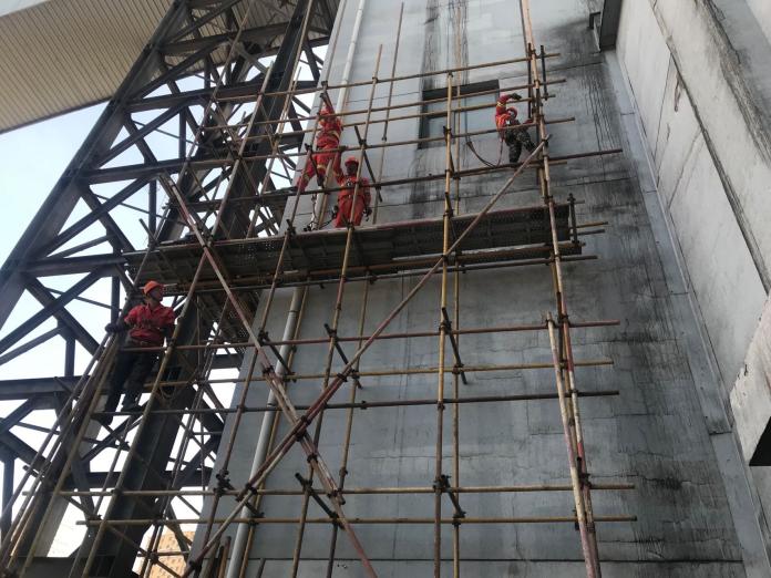 煙囪改造屬于超危項目,需要在離地50米的高處搭設鋼管架。施工區域地勢空曠、風力強勁,所有施工人員嚴格遵守高處作業安全規定,做好自我防護,注意“四不傷害”,不野蠻施工,不冒險施工,克服僥幸心理,合理安排工作。在大家的共同努力下煙囪外架已經順利搭設完成,贏得了電廠的一致認可與好評。