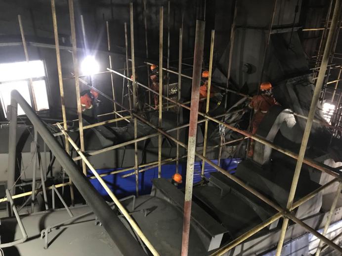 項目施工部位存在很多運行中的設備,包括運行的皮帶、汽機、碎煤機等,安全風險高。為了消除安全隱患,項目部安排專人專班搭設鋼管架,做好隔離防護,落實防火措施。工人師傅陳長豹、高作雄等憑借過硬的操作技能、良好的安全意識,始終沖在最前線,帶領大家搭設鋼管架。面對運行中的各種設備、管道管線等障礙物,大家吊裝材料慎之又慎,傳遞鋼管小心翼翼,搭設鋼管認認真真,確保不碰壞、不砸壞、不墜物,不發生任何安全事故,安全高效地推進施工。