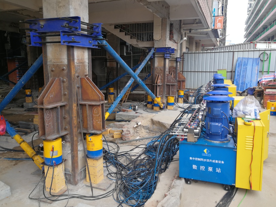 巨成結(jié)構(gòu)是中國(guó)標(biāo)準(zhǔn)化協(xié)會(huì)標(biāo)準(zhǔn)《鋼滑道頂升改造老舊小區(qū)技術(shù)規(guī)程》和湖北省地方標(biāo)準(zhǔn)《鋼滑道頂升增層技術(shù)規(guī)程》的主編單位。本次糾偏采用的是巨成群控同步頂升成套設(shè)備。巨成結(jié)構(gòu)在2021年12月8日發(fā)布了集中控制同步頂升成套設(shè)備,采用了德國(guó)西門子的5種芯片,讓頂升、糾偏、平移、旋轉(zhuǎn),實(shí)現(xiàn)了數(shù)字化信息化。目前已升級(jí)為群控同步頂升成套設(shè)備,可同時(shí)控制30000個(gè)千斤頂,誤差在0.3mm以內(nèi)。