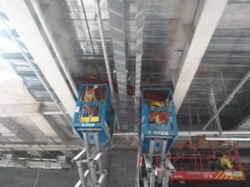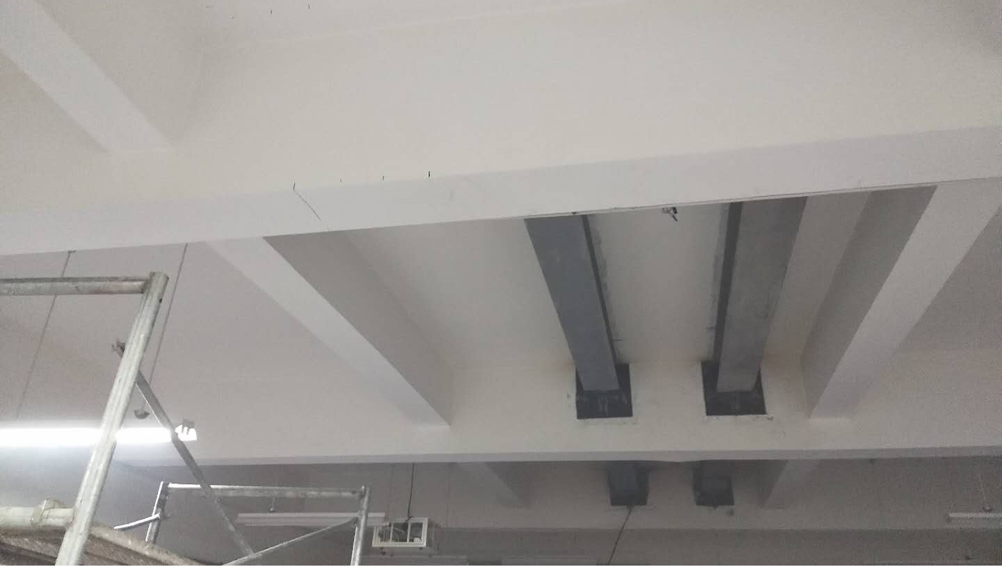 ?沙宜家購物中?項?因新增防?卷簾造成的樓?荷載增加,經加固設計,對混凝?板厚不滿?設計要求處采?板下新增型鋼結構加固處理。