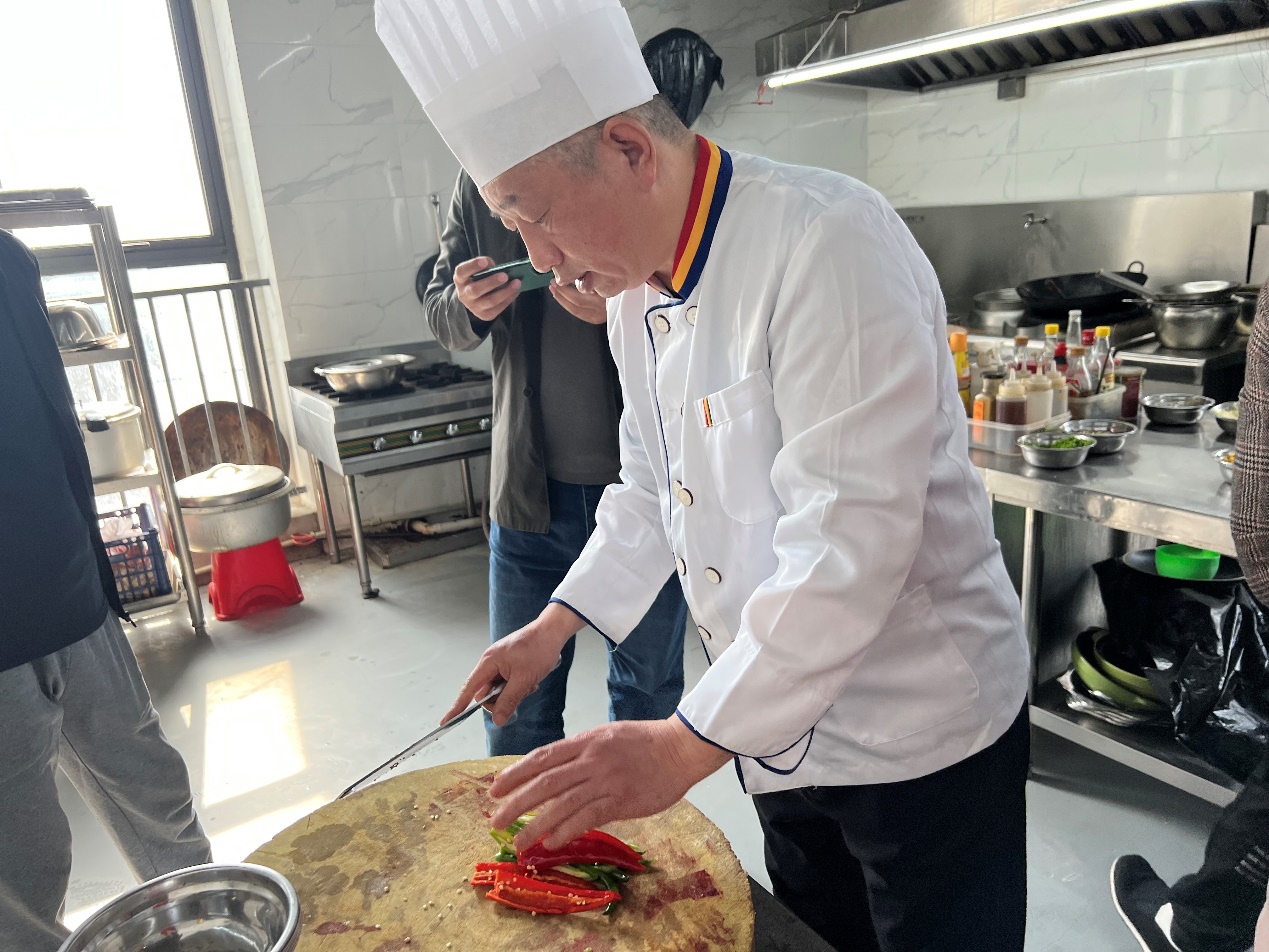 在培訓(xùn)現(xiàn)場,管大廚為大家詳細(xì)講解烹飪的各個環(huán)節(jié),從選擇原材料、食材粗加工,再到菜肴制作技巧,主料、輔料的用量及放置順序等,對烹飪過程中的關(guān)鍵步驟進(jìn)行重點(diǎn)指導(dǎo)。管大廚通過理論結(jié)合實際,煎炒燜炸鹵燉,邊講授邊操作,不少認(rèn)真好學(xué)的學(xué)員紛紛拿出手機(jī),拍攝教學(xué)視頻或記錄操作步驟。通過培訓(xùn),巨成全體廚師表示將舉一反三,提高個人烹飪技能,更好地為巨成員工制作味美、健康的工作餐。員工也學(xué)會了一兩道拿手菜,提升家人舌尖上的幸福。