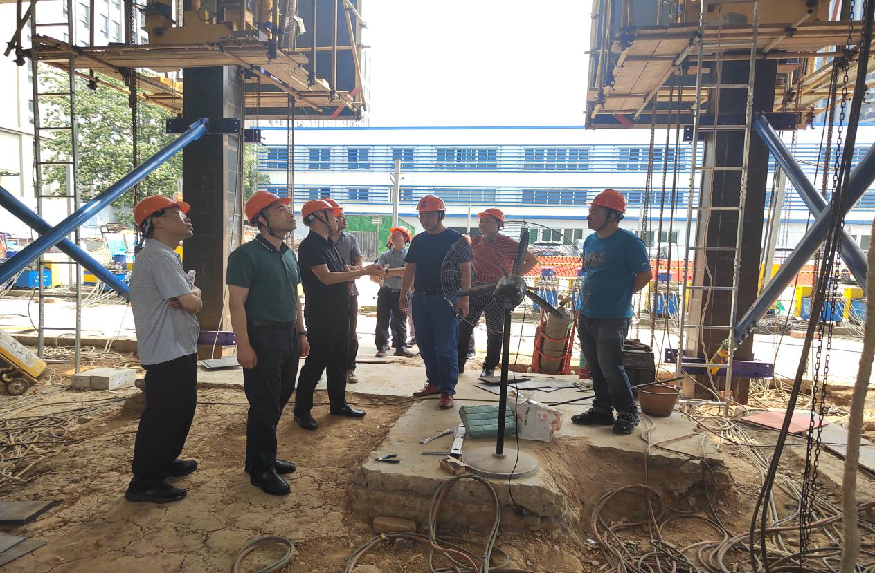中輕武設李總一行來到巨成群控同步頂升工程試驗項目現場,副總經理廖杰洪介紹了頂升試驗內容和目的,并對群控同步頂升大型數控設備以及頂升原理等做了詳細講解。雙方在現場展開了熱烈討論,并就試驗過程中的相關技術要點進行了深入交流。