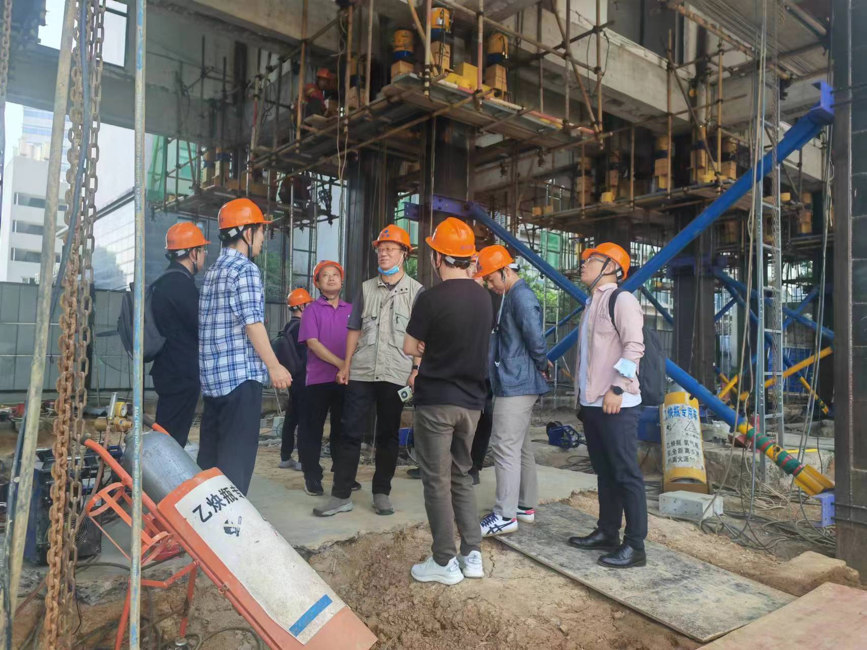 在巨成鋼滑道群控同步頂升工程試驗項目現場,研究院院長助理周志勇對鋼滑道群控同步頂升試驗的背景和目的進行了介紹,對該技術的安全性、高效性、經濟性等特點進行說明,雙方對鋼滑道頂升技術應用場景展開了熱烈討論,并就試驗過程中的相關技術要點進行了深入交流。