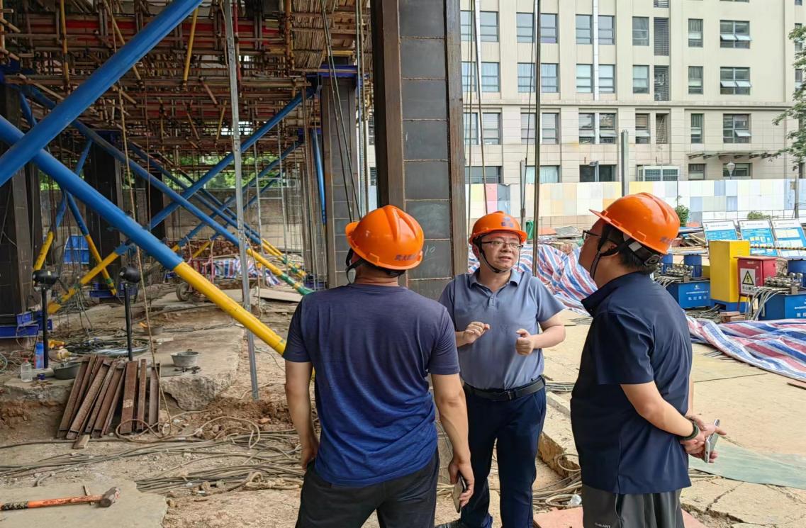 陳總一行考察了巨成鋼滑道群控同步頂升工程試驗項目現場,巨成副總經理張暢介紹了頂升試驗的具體情況及未來憧憬。并對現場群控同步頂升大型數控設備以及頂升原理做了詳細的介紹。雙方對鋼滑道頂升技術應用場景展開了熱烈討論,并對試驗過程中的相關技術要點、施工流程進行了深入交流。