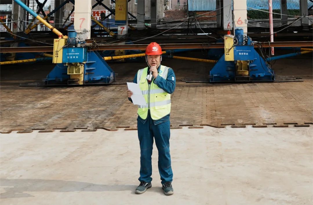 巨成公司董事長高作平代表公司感謝了業主、總包、監理的強力支持。他指出,今天既是鄂州電廠消防大樓移位工程成功的慶典,更是鋼滑道剛性平面軸心旋轉法與鋼滑道剛性軸線同步頂推平移法工程試驗成功的新聞發布會。此次鄂州電廠消防站遷移工程的成功實施,是巨成鋼滑道理論在建筑物旋轉、平移領域的創新應用,是巨成公司鋼滑道理論在頂升、頂降、糾偏之后的進一步完善與拓展。如果將此前的移位技術比作公路運輸,鋼滑道理論的移位相當于鐵路問世。巨成鋼滑道理論在建筑物改造領域潛力巨大,巨成將一如既往地在建筑物改造領域拓展發力,為建筑業新質生產力貢獻巨成力量。