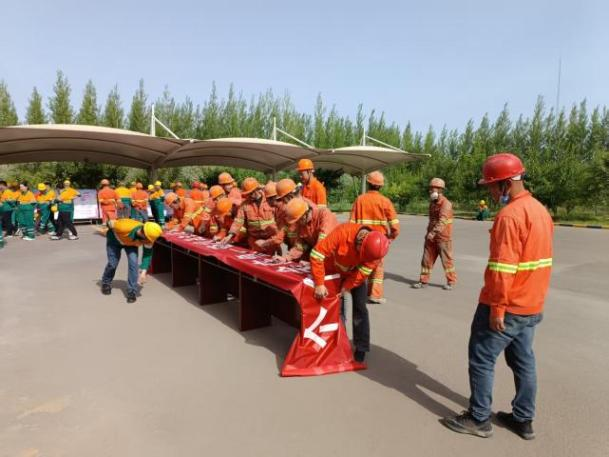 “安全生產(chǎn)月”活動開始之初,在醒目位置設(shè)置“安全生產(chǎn)月”活動海報,組織學(xué)習(xí)海報內(nèi)容,每日安全早會著重強調(diào)“安全生產(chǎn)月”活動的重要性,提高安全意識。6月1日參加業(yè)主方組織的2025年“安全生產(chǎn)月”啟動儀式及動員會,舉行全員宣誓及簽字儀式。